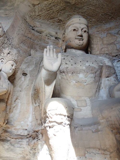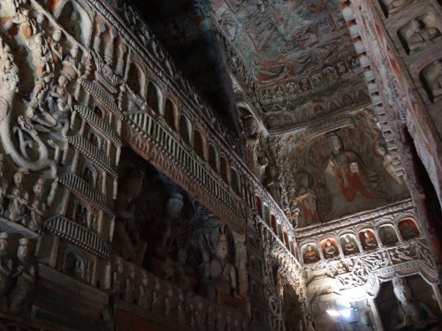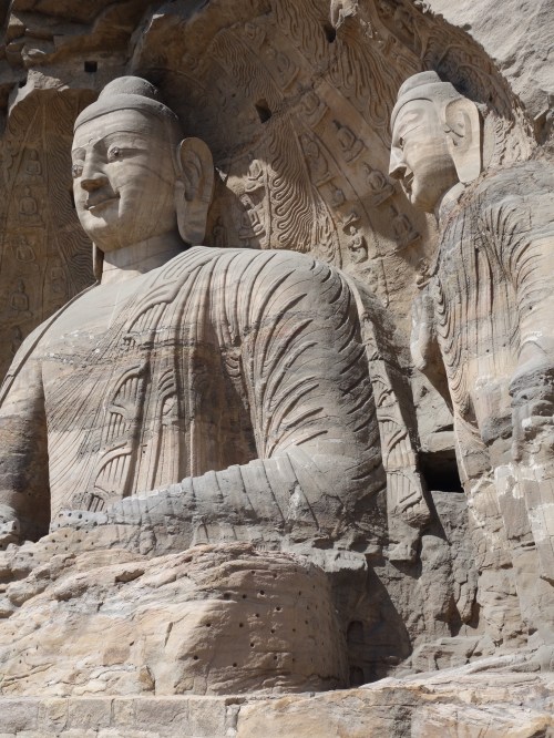 We started our day’s festivities at the Yungang Caves, a few kilometres outside Datong (But an hour or so due to the stupid traffic lights and volume of honking muppets on the roads). These date from the 5th Century and are staggering in their scale. Row after row of intricately carved Buddhas, some slightly sterile reconstructed temples (Why do they do this?) and a posh visitor centre.
