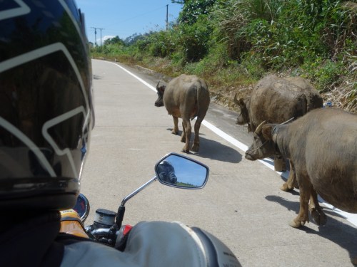 At one point, Quang braked quite sharply to avoid what looked like a bit of tyre… Upon closer inspection it turned out to be a very long cobra nonchalantly crossing the road! I remarked on the dangers of flicking a snake up from the ground but Quang, the animal lover, explained that he just didn’t want to kill it! Mr. Cobra exited stage left, unharmed. I did get a photo but managed to delete it. D’Oh! In my defence it was a crap photo and you could barely see it anyway.