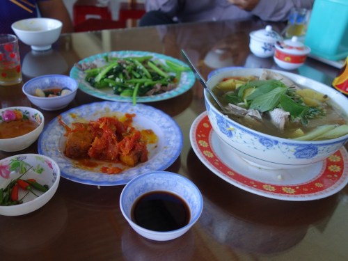 Onto lunch at a local roadside cafe. The Dutch women were only touring for 2 days, and appeared somewhat shocked that I’d handed over dietary control to Quang. My excellent tactic was proven right again however, as ours was far more interesting than theirs!