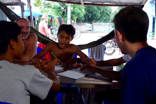 The cafe across the track served as a bit of a social centre for volunteers in the mornings, meeting for great iced coffee and other snacks. Three generations of the same family work there, and both of their children came to classes. If CPOC was not there, the children probably wouldn’t have been learning English at all. It’s easy to judge parents for making their children work, but when times are hard in the countryside children have to be ready to help their parents, there’s no choice if it’s a choice between eating or not. During harvest times the number of children in school drops considerably. Subsistence farming is a hard life and Cambodians are seriously tough, stoic people.