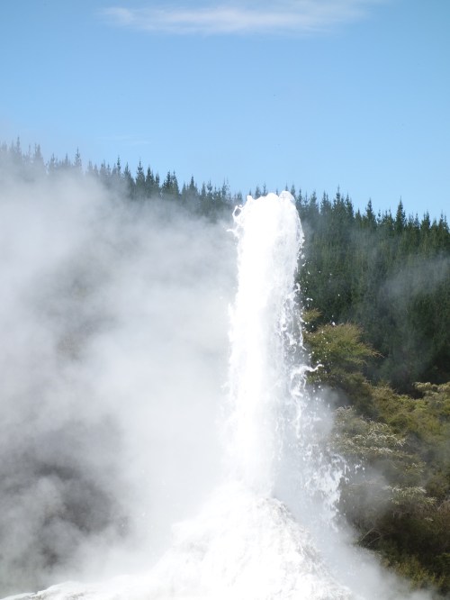 The Lady Knox geyser apparently naturally erupts on a 36-48hr schedule so is ‘induced’ on a daily basis. This geyser was discovered by workmen who used to wash their clothes in its pool, and the soap they used triggered an eruption, leading to its development as a tourist attraction: Surfactant is still used to induce the chemical reaction responsible for causing the geyser to spout forth.