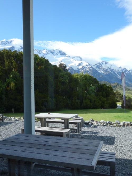 So, back to the village, and I’d decided to treat myself to a meal out. Primarily because it was my last night camping out, but also because I thought that my body simply wouldn’t tolerate another dose of baked beans. I ate at the Old Mountaineer’s restaurant beside the DOC visitor centre, which boasts spectacular views of the mountains and a surprisingly reasonably-priced menu.