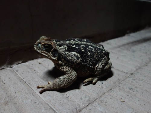 A late evening meal allowed us to both enjoy some more great food, and also marvel at the variety of insect life divebombing us. Plus, to meet a family of toads living on the ranch including this monster, which was bigger than my hand, not that I got it close enough to have a true comparison… He’s called Pepe, apparently.
