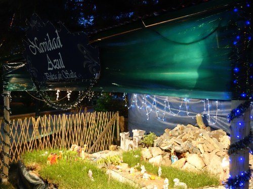 New Year’s Eve was a good event. Families get together across the village and enjoy a pre-midnight feast. You can tell the success of the night by the complete absence of anywhere open, or indeed anyone alive, the next morning. Mum was still working to a European timetable so we ate earlier and I then went out for a wander. Seeing a crowd around the cathedral I decided to investigate, and was treated to a spectacular performance of the Nativity. Featuring Angel Gabriel in his cowboy hat, no less. And also the local Police’s “Blue Christmas” display!