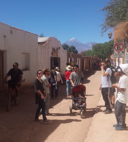 The roll down from the peak of the Paso de Jama is a long one, descending two thousand metres. As you leave the patches of snow and high altiplano, the landscape turns into red, relentless desert. The air becomes warmer and drier and then, out of nowhere you spot a low-rise collection of houses and you’ve arrived.