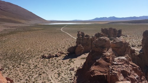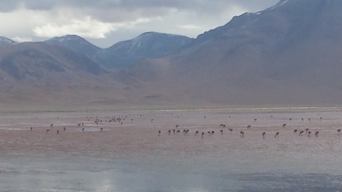 Onwards. One of the criticisms of the Uyuni tours is that there’s a lot of driving between places, hopping out for photos, hopping back in, driving on… Whilst this is true to a certain extent you are at least seeing some really cool stuff. Our final stop of the day was the Laguna Colorada, a lake with a truly impressive flamingo population who, unfortunately, were resolutely avoiding us…