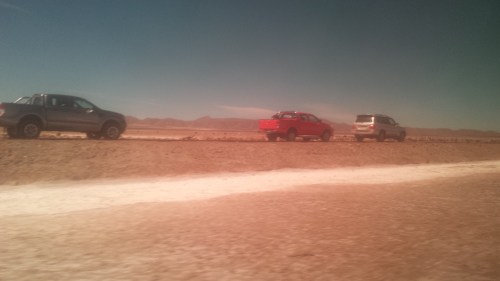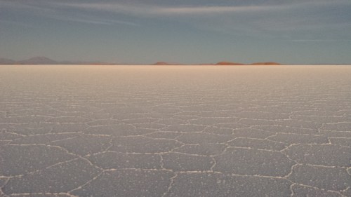 After a surprisingly decent night’s sleep we had a pre-dawn start to get out onto the salt plains proper. Dark at the start, and then dozens of kilometres of salty emptiness.