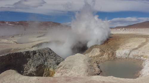 This also was the venue for our lunch stop. The food was consistently brilliant throughout the tour, very tasty and lots of it, which was good to see. I do need my food. Onto the next stop… The Sol de Manana geysers. Infinitely more entertaining than the ones I’d paid for a tour to see. Health and Safety taking a back seat as you’re kind of free to roam wherever, with vague warnings not to fall into the steaming mud holes!