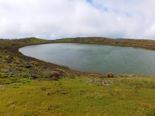 You can hit lucky or very unlucky with the weather here- As you might guess by the presence of wind turbines, there is a serious amount of breeze up on the top, blowing unhindered across the island, and hence either bringing in, or shooing away, troublesome rain clouds. Above the lake we saw frigate birds dive-bombing the water, but never landing- They use the lake to wash the salt from their feathers, but cannot land as they’d find themselves unable to get back up into the sky. Apparently!