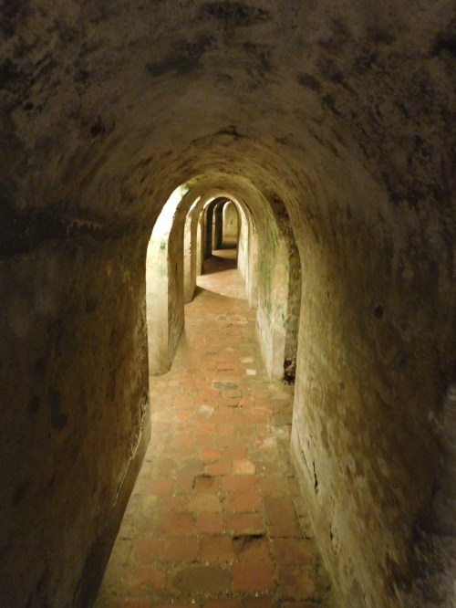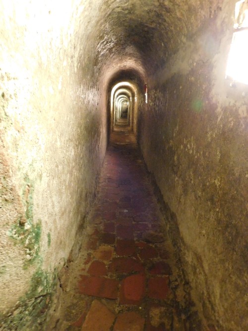 As you go deeper underground, sound disappears, you can hear nothing. The passageways start to get damp as you near the water table and then they stop lighting the lowest passageways. I managed to get a fairly good distance due to my trusty torch but when they started getting narrower and wetter I’m unashamed to say that I wimped out and headed back to the Cartagena sun.