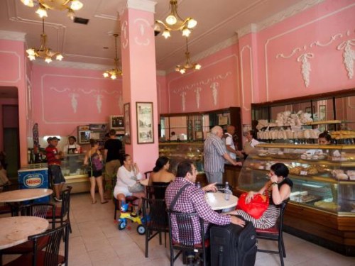 I set out in the late afternoon for a bit of light exploration, my wanderings took me first to an establishment which would form a regular haunt during my time in Havana. An unlikely den of sin, however den of sin it certainly was, the Pastelera Francesa opposite the park. First and foremost it’s a Goverment purveyor of pastries and coffee in an otherwise expensively upmarket tourist trap area, but more than that it’s a hub of local life.