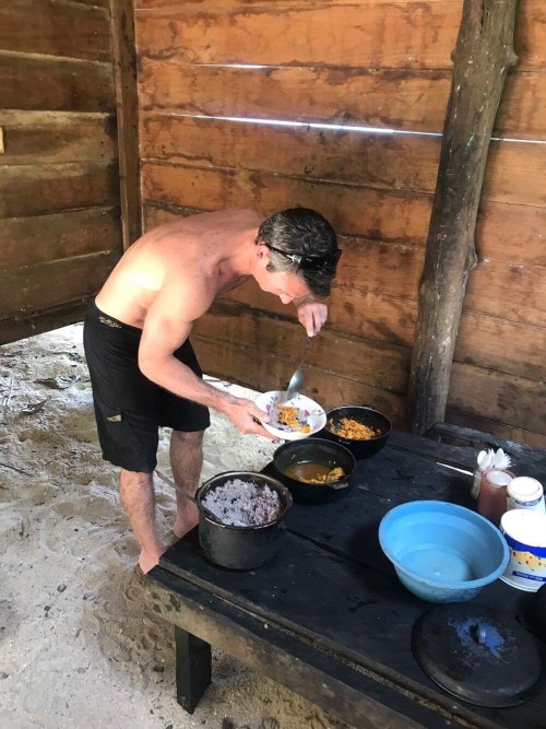 Itchy feet hit all of us at the same time. So, we decided to strike out to the next beach up the coast. A bit of activity to burn off last night’s excesses. Polo Beach is about an hour’s walk, thereabouts, up the beach and then dotting in and out of the forest. Mind the fire ants! It’s a great snorkelling spot with a shallow reef stretching a good half mile out to sea. Or just a ‘sit on the beach and drink rum from coconuts’ spot. And it’s also home to the eponymous Polo, a character who’s lived there for the past 56 years. He used to farm, but increasingly now has chosen the easy life and just cooks fish for any visitors who swing by…