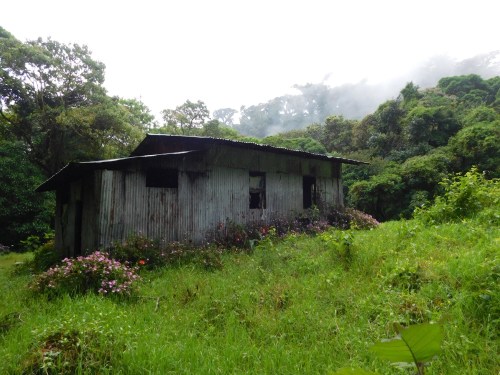 Indeed, our joy at the sunny morning was misplaced, since the rain came and worsened steadily. Entering the junglier, steeper part of the trail was a blessed relief. Past some suitably spooky houses and into the realm of the howler monkeys…