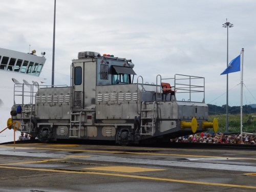 Panama is one of the few places in the world whereby Captains are required to relinquish control to experienced pilots. They, along with tugboats, manoeuvre the vessel into the mouth of the locks, from where it is tethered to several small locomotives running the length of the lock on tracks.