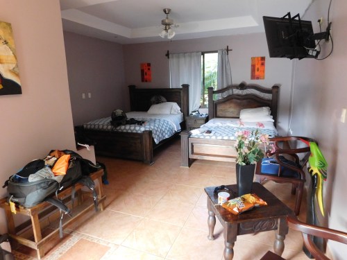 Next stop was our home for the night, Villas Escondidas near to Grecia, a good deal at $65 a night for a huge room with two huge double beds. And indeed a great, but freezing pool.