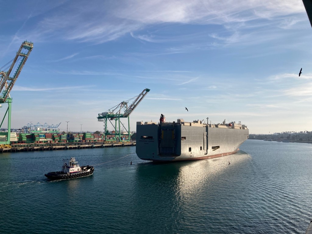 Fuelling up the behemoth just before the hire car depot, we Ubered over to the cruise port. This is part of the Port of Los Angeles, and the scale as you approach over the vast bridge is staggering. Even with a pretty huge cruise ship, we were minnows in amongst the container ships and bulk carriers plying the waterway.