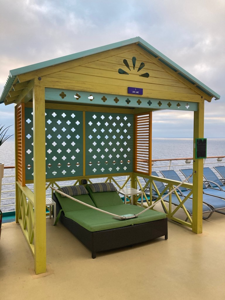 Naturally, this being an American party cruise there was a “Sail away party” on the pool deck. No, of course we didn’t attend. The last party I attended on a “cruise” ship was a somewhat paltry affair on the deck of a boat in Halong Bay, Vietnam- alhough I did end up, er, meeting a very lovely American chef that time. This one had more music and whooping, but no more appeal.