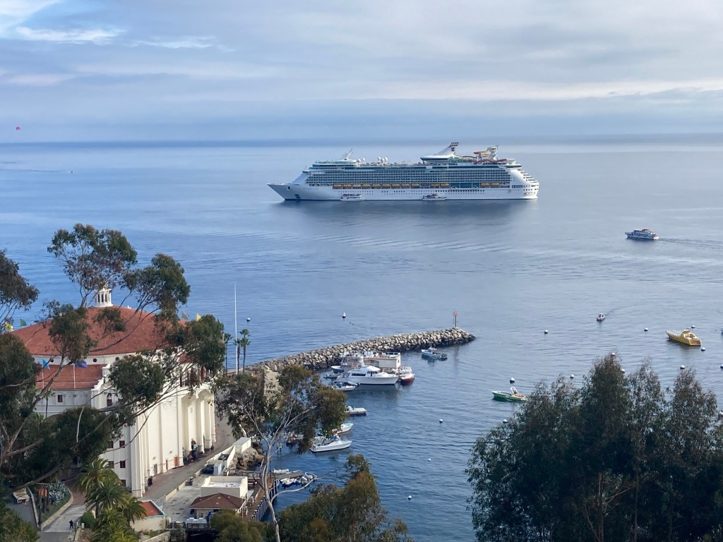 The next morning we anchored off Catalina Island, very close to LA- The previous day’s cruising had just been going down towards Mexico and back for the sake of it. Sorry Greta. The prospect of escape from the ship and exploring somewhere new was exciting, so early breakfast and off via tender.