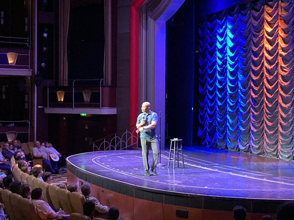 Whilst we’d been a bit boring about the entertainment thus far, that evening we went to see Kivi Rogers, a well-known LA circuit comedian, which was a good laugh. Not belly laugh, but a decent act nonetheless. Every night there’s something different in the main theatre, and minor musical acts in most of the bars too for a bit of range.