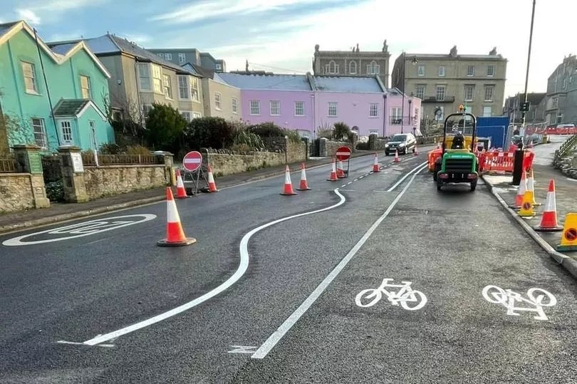 Up the next morning reasonably early, mainly due to a coffee van parking next to us and a crew of very loud Dryrobe-clad enthusiasts. No harm, no foul though, since a cursory peek through the skylights revealed bright sunshine. Clevedon’s got a lovely promenade to stroll, so we headed into town in search of decent coffee, as the coffee van had since departed. The council haven’t yet got rid of the ridiculous wavy painting around the seafront though. They’ve just slathered some shell grip on the road for reasons of their own.