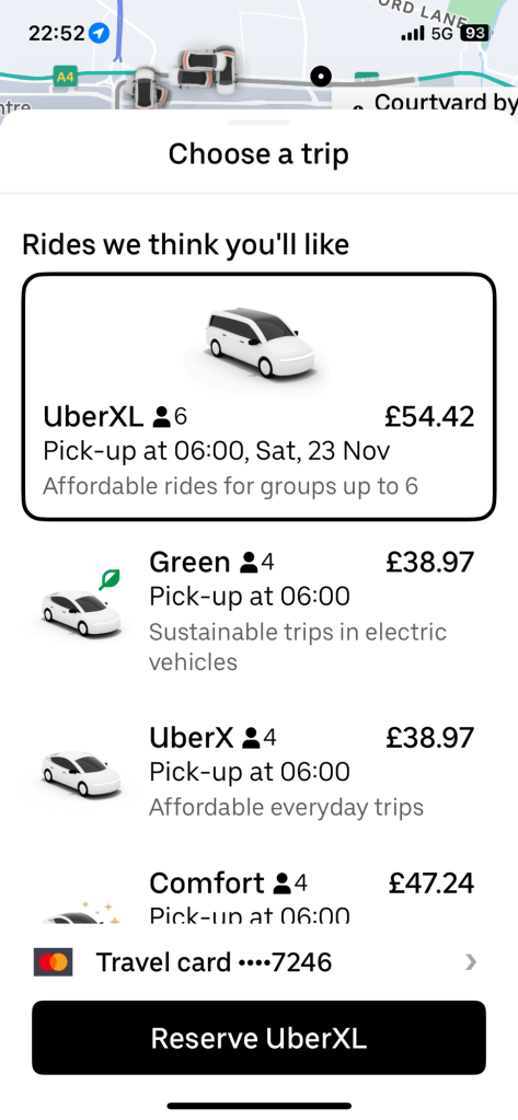 Mark was quite keen to get an Uber to the airport, I was rather less so, given that it was literally half a mile and a bus went direct from outside the airport for the princely sum of £1.75 rather than, er, £38.97. It’s, like, 5 minutes away.
