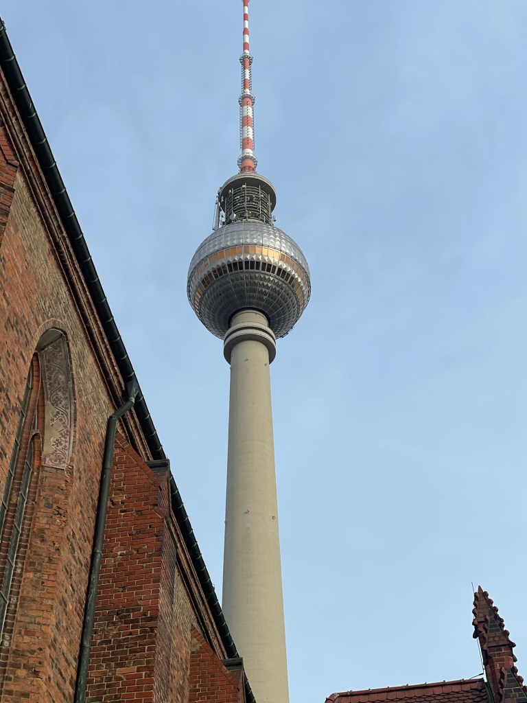 This became however a day of pleasant wanderings, starting at Checkpoint Charlie. Quite apart from the historical significance, I was more fascinated by the amorphous gang running the good old “cups” hustle on the pavement. The “casts” for these things are staggering- I counted at least 8 co-ordinators and stooges and every time I thought someone was being taken in…no, another stooge. We continued onto the “Museuminsel” and up the TV tower, for a fantastic view of all sides of the city. Worthwhile things to do. The cluster of identikit tacky souvenir shops around Checkpoint Charlie less so… complete with “authentic” bits of Wall for sale- But really, this far on, who can tell?!