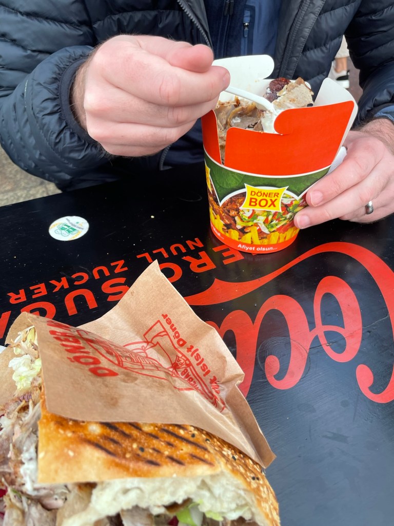 My autistic brain by now was firmly in waiting mode for our 7pm flight home, so we made our way back over town towards the hotel. I was very insistent on needing a kebab, therefore we dined alfresco at the local kebab hut. Filled the gap admirably. Just time to pop back to KaDeWe for some presents to take home, and again across the city airport-wards.